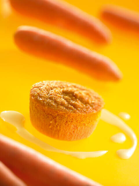 10,5 Kg de purée de carottes 0,75 Kg de poudre d'Amandes 1 Kg de citrons 1 Kg d’oranges 0,3 Kg de beurre 2,25 L d’oeufs entiers liquide 0,7 Kg de sucre 0,4 Kg de miel 0,5 Kg de maïzena 2 L de crème anglaise U.H.T.