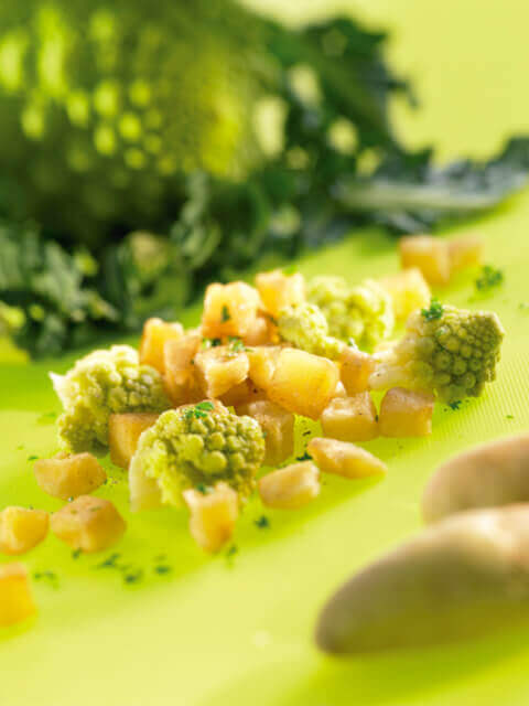 10 Kg de romanesco surgelé 10 Kg de pommes de terre « cubes » 4ème gamme 0,5 Kg de beurre 0,125 Kg de persil surgelé PM sel PM poivre